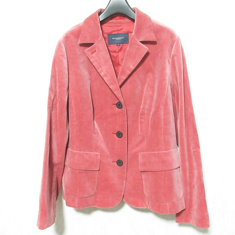 > 良品 BURBERRY LONDON バーバリーロンドン ベロア テーラードジャケット FC124-696-18 大きいサイズ 44 レッド