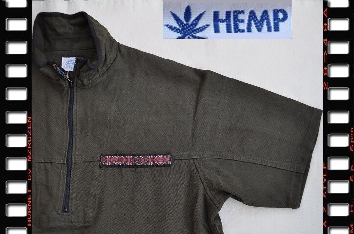 - HEMP ヘンププルオーバーショートスリーブシャツ カーキ サイズM 新品厚めの麻素材