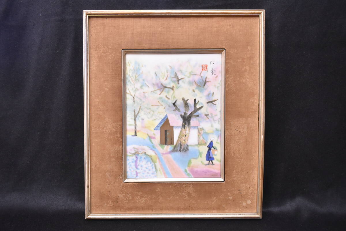 > ●【真作】ノリタケ/NORITAKE/陶板画/堂本印象/風景画/額装/陶器/陶板/UCE1207