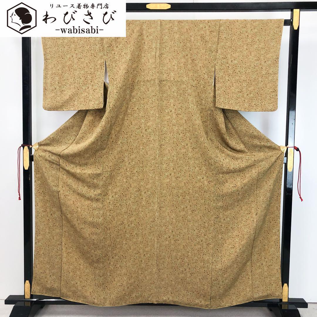 > 小紋 唐草模様 鳥 梨子色 縮緬 K-4497 着物 きもの kimono 和服 和装 中古 リサイクル着物 【送料無料】