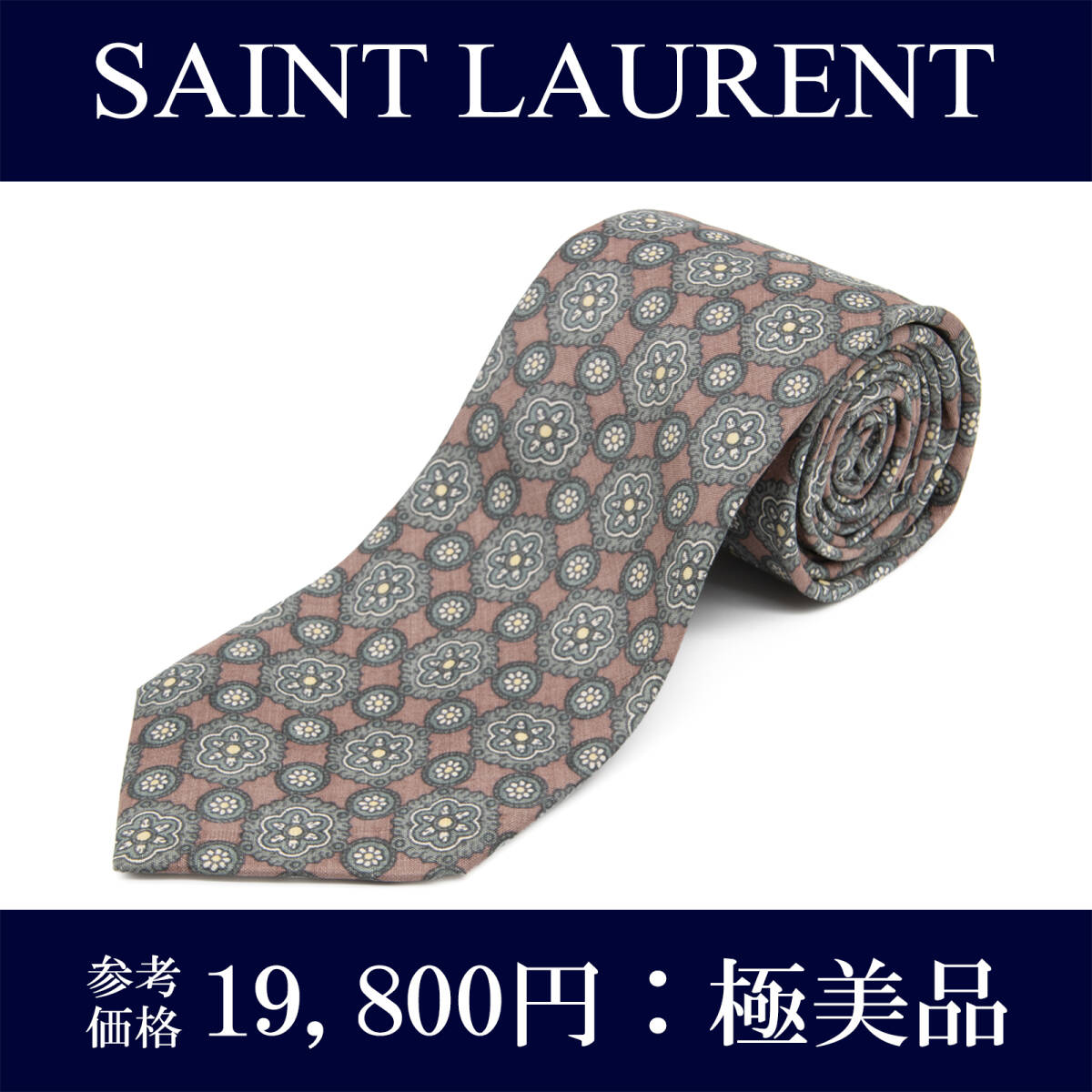 > 送料無料 サンローラン ネクタイ シルク 赤紫色 ライラック 緑 グリーン 黄色 イエロー 珍しい 花 フラワー ブランド おしゃれ 綺麗 N373