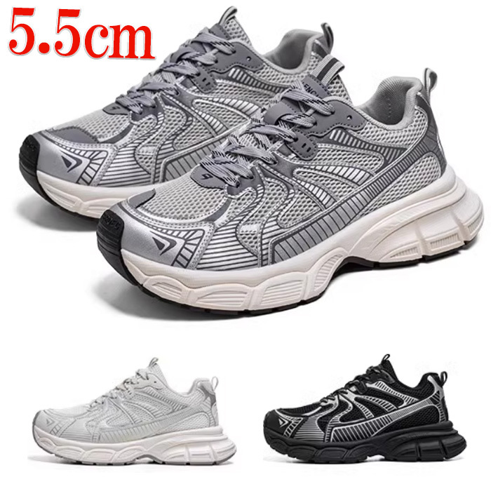 > メンズ レディース 厚底 5.5cm 身長アップ シークレットシューズ スニーカー カジュアルシューズ ブラック ホワイト グレーブラック