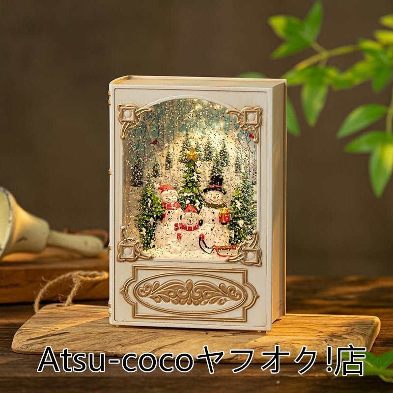 - クリスマス飾り オルゴール スノードーム 図書型 音楽ボックス 自動降雪 水晶玉 電池式/USB電源式 キラキラ 誕生日 贈り物 (ホワイト)