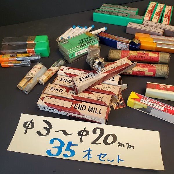 - 【アウトレット品】 エンドミル 各種 詰め合わせ 8枚刃 ロングスパイラル 他 Φ3㎜~Φ20㎜ 計35本セット 金属加工 切削工具 sp-024-460