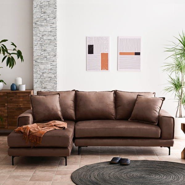- 新品 傷に強い 一時撥水 ファブリック カウチソファー ブラウン モダン 3人掛け 大型 おしゃれ 多機能 リビング outlet:ST10-11J01