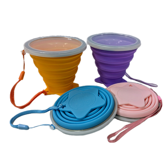 - 【P010401】折りたたみシリコンカップ ≪オレンジ≫ 携帯コップ コンパクトカップ 計量可能 防災・アウトドア用品