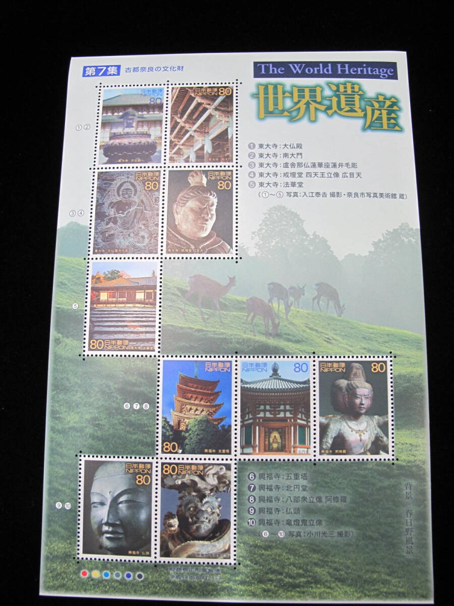 - 世界遺産 第7集 古都奈良の文化財 80円 記念切手シート ①