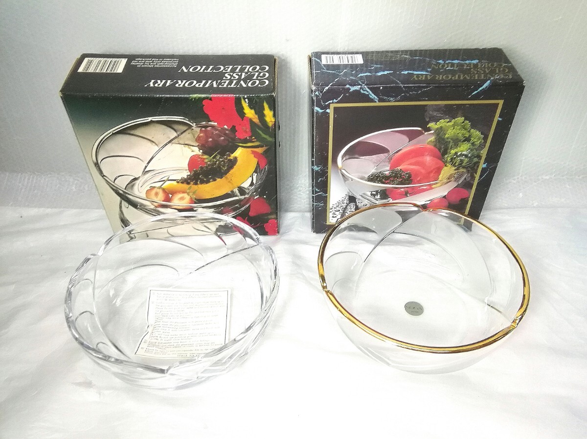 - SOGA 曽我ガラス ガラスボウル 「MEDIUM BOWL 7」 2点セット 金縁 直径28cm サラダボウル 昭和レトロ 未使用長期保管品