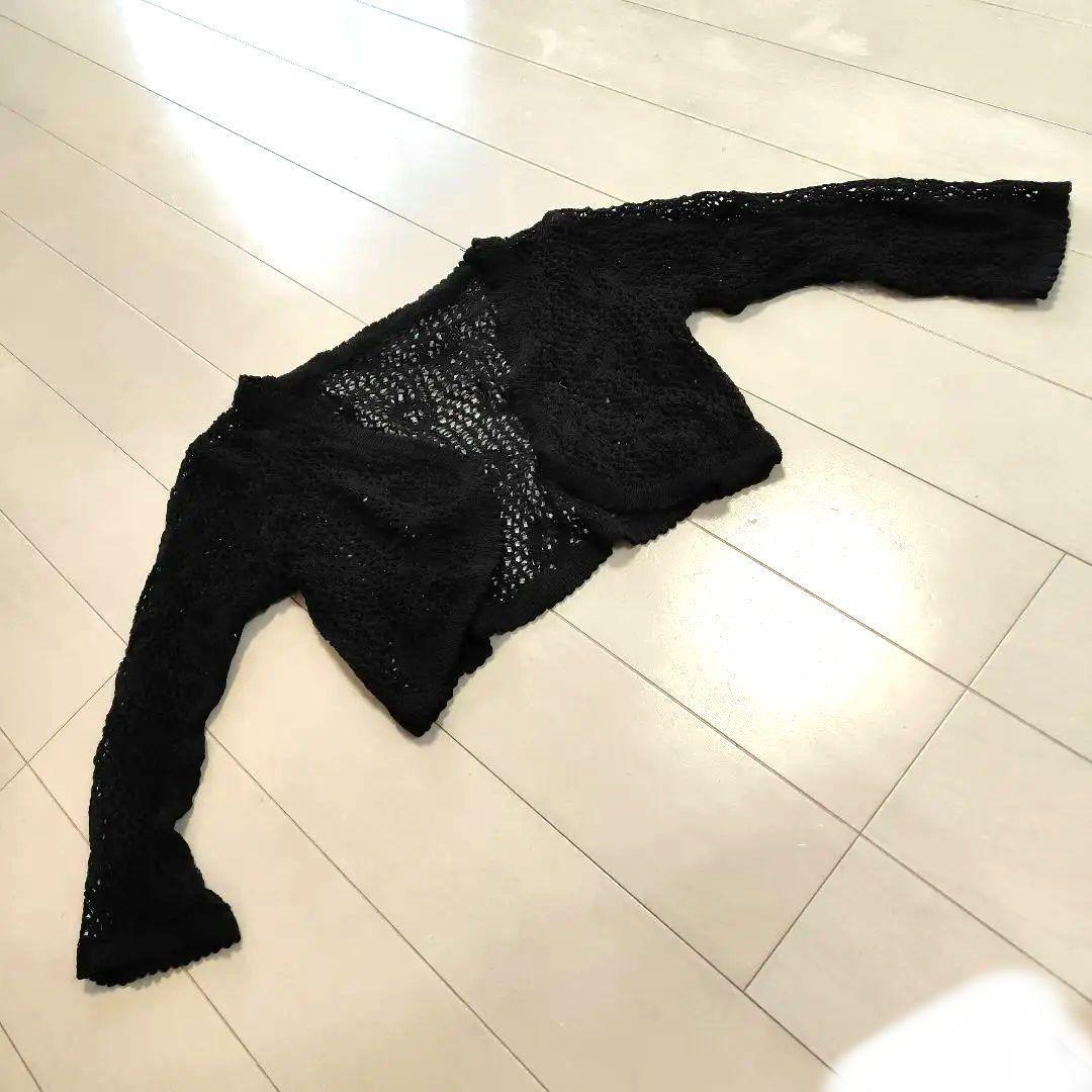 - 七分袖 鍵編みボレロ 素材不明 ブラック Sサイズ相当 お花模様 ボタン無し