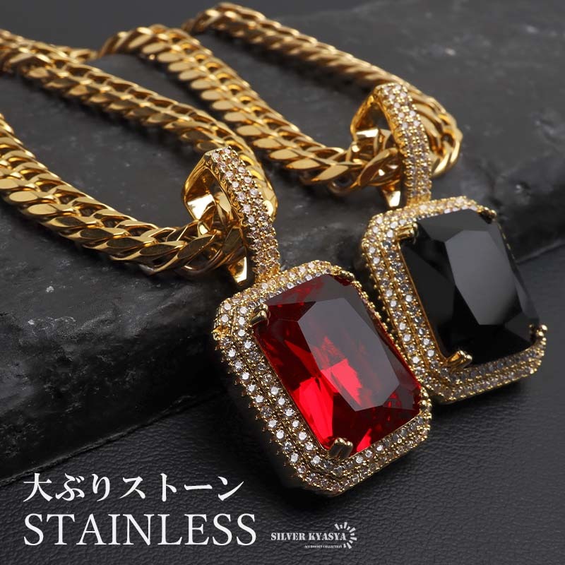 - (ブラック、60cm) ステンレス ストーンネックレス ブリンブリン 大粒 ごつめネックレス ダブル喜平ネックレス メンズ
