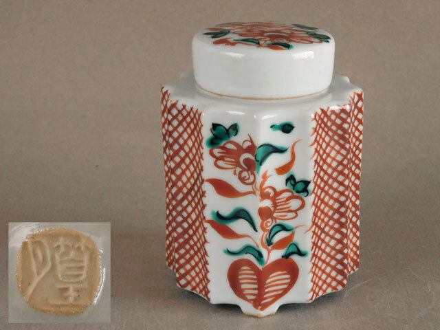 - 平安 桂窯 篁月 赤呉須 茶入 茶壺 煎茶