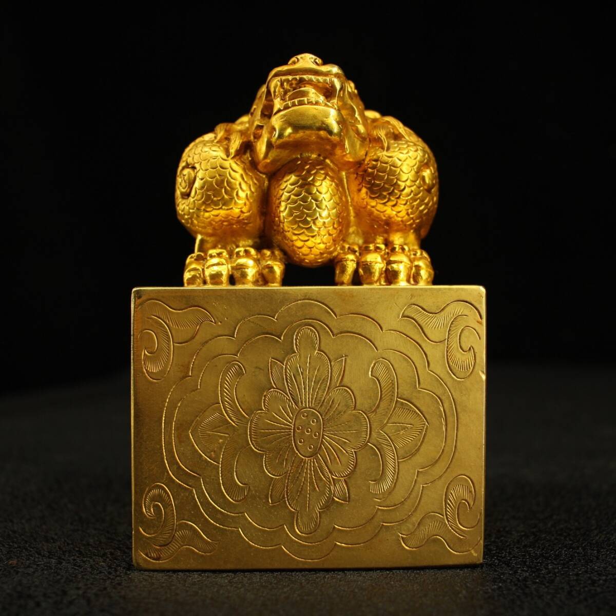 - 『館蔵珍品 銅製 塗金 瑞獣印章』置物 賞物 貴重物品 収蔵品 中国古美術