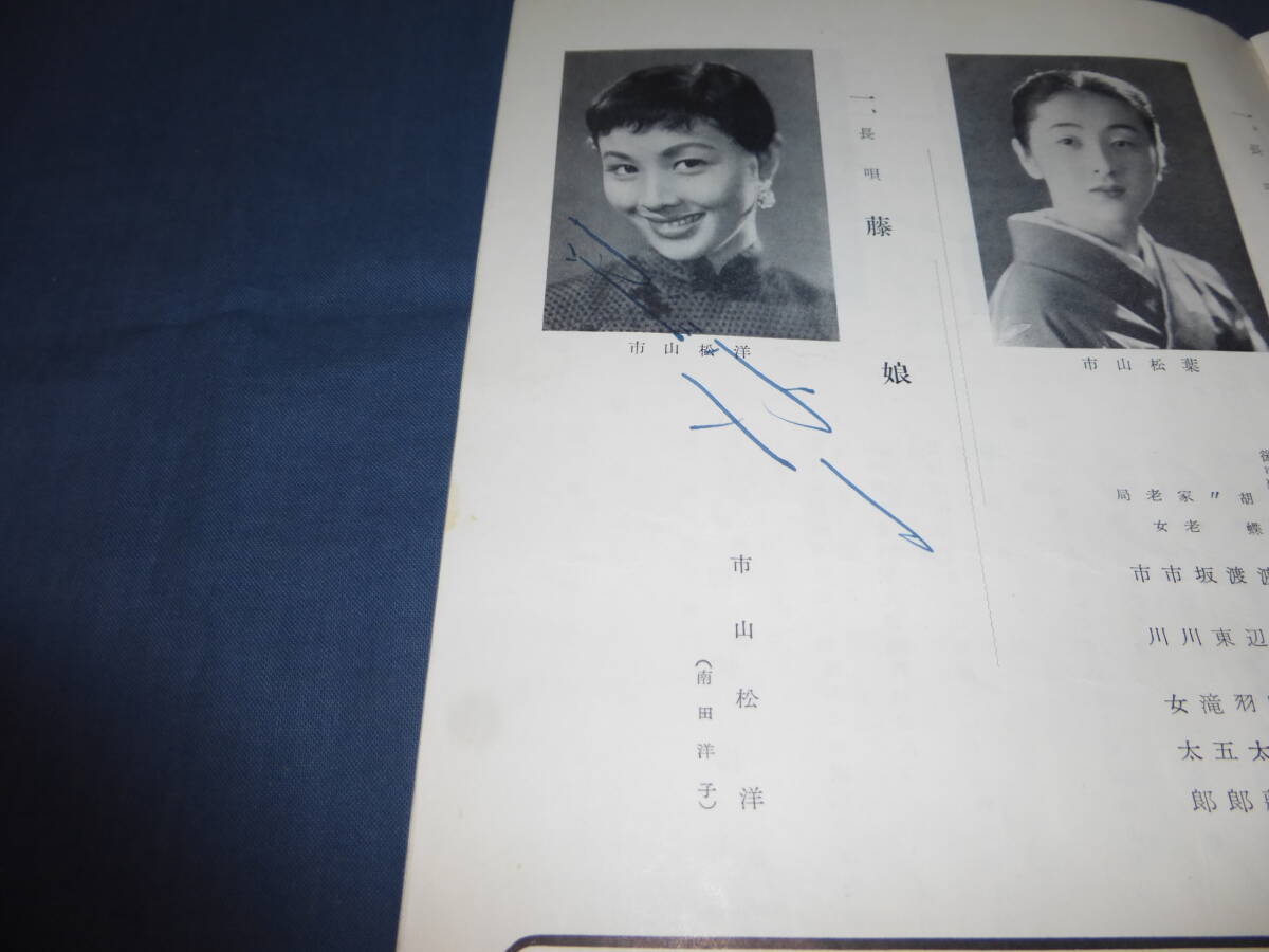- (57)南田洋子(市山松洋)直筆サイン入!先代家元市山松扇「追善舞踏会」パンフ 1955年 東横ホール 古い舞台パンフ