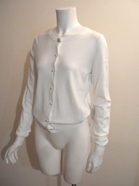- 新品2024SSモデル入荷☆彡イタリー製【NEW-J】◆ニュージェイ◆綺麗な白!ビジュー&パールボタン”レーヨンストレッチニットカーディ!