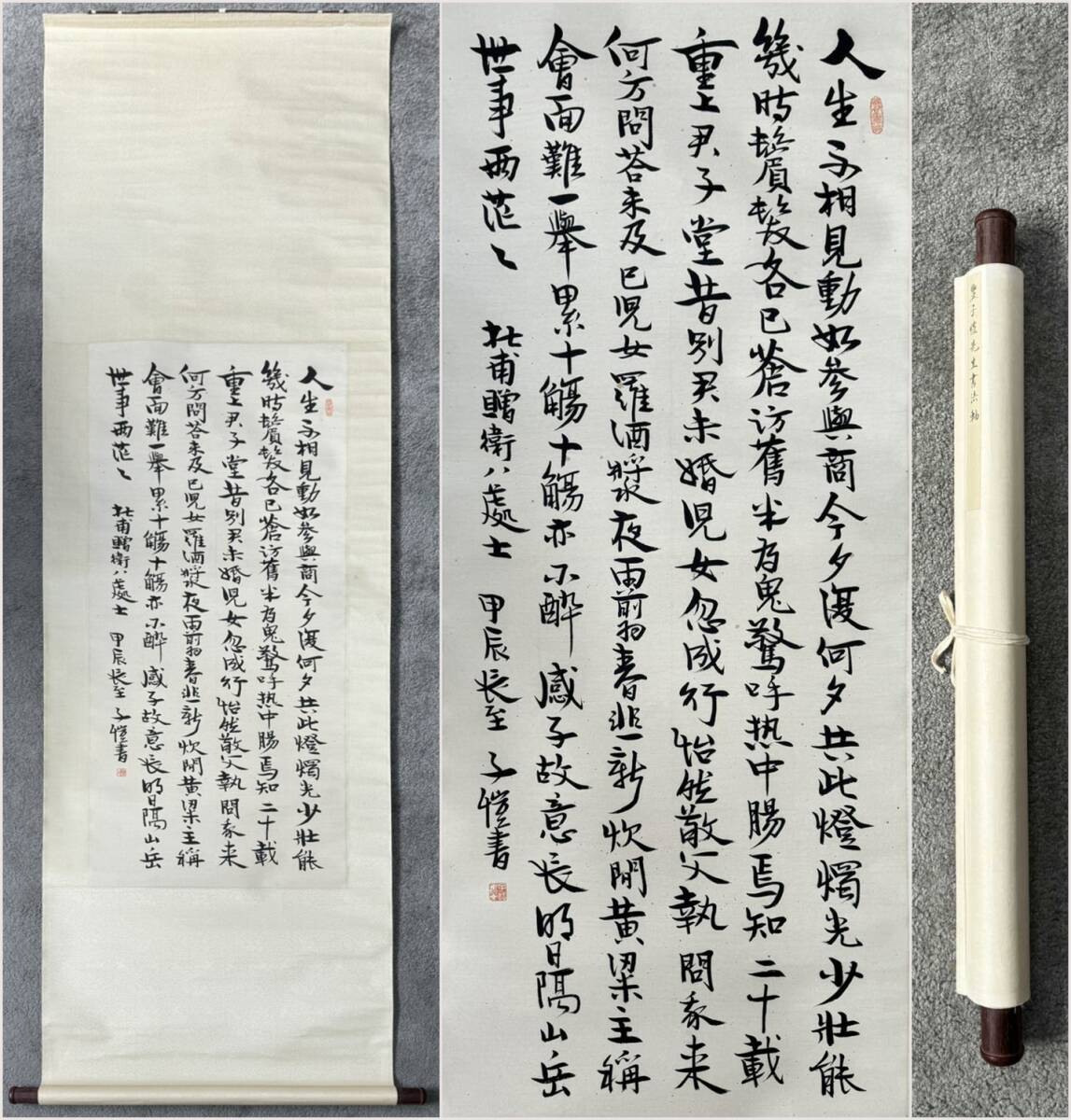 > 古美術 掛け軸 中国・近現代 「豊子愷書」 紙本 【詩詞】 立軸 書道 巻き物 肉筆保証 唐物 古画 画心109x43.5cm LT-2503306