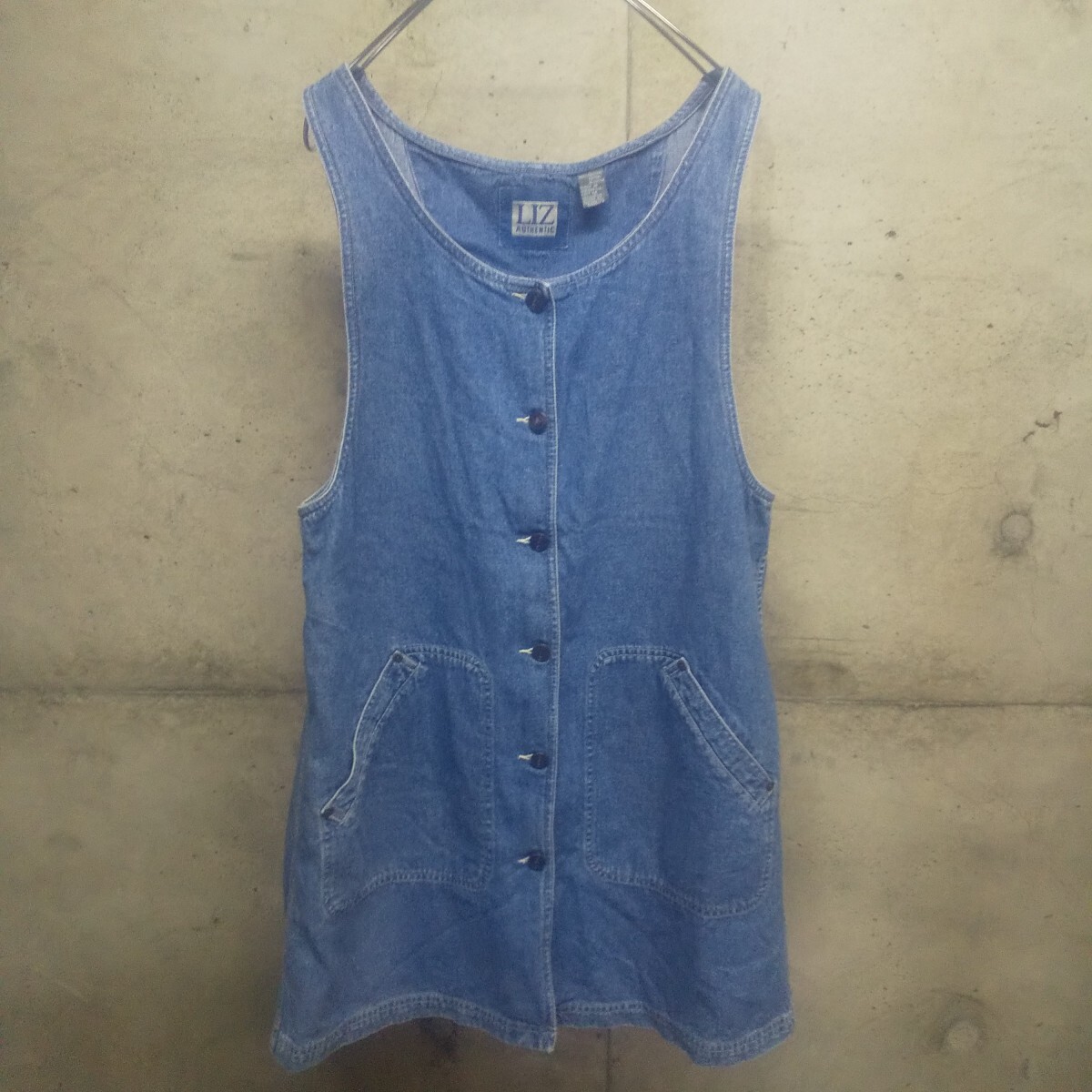 - 90s vintage デニム ジャンパースカート L US古着 ヴィンテージ ビンテージ used ワンピース ノースリーブ オーバーオールスカート