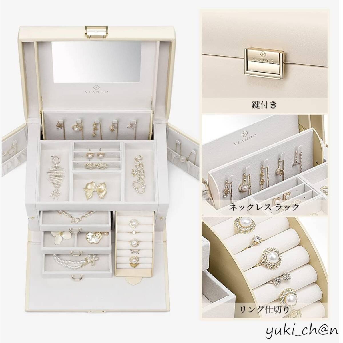 - ジュエリーボックス アクセサリーケース ジュエリーバッグ 小物入れ あんず白色 収納 アクセサリー ジュエリー 鏡付き プレゼント