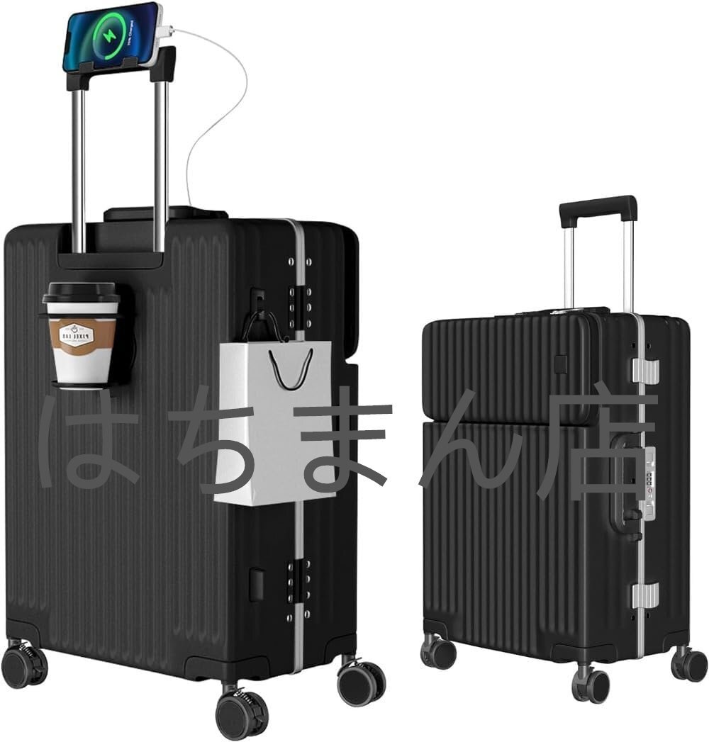 > スーツケース 多機能フロントオープン キャリーケース ストッパー付き 機内持ち込み キャリーバッグ 携帯スタンド (黒です,40*23*66cm)