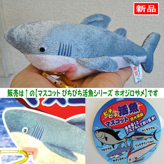 - 【送料無料/即決】マスコット さかな ビチビチ活魚 釣り気分ブルブル巨大魚編 ホオジロザメ 1個 カラビナ付 アミューズ 301