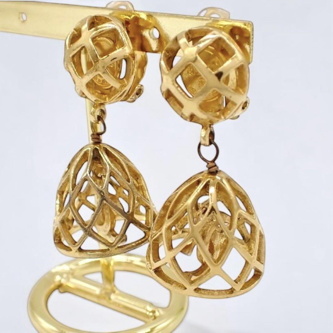 - CHANEL シャネル 鳥かご イヤリング イヤークリップ ココマーク ヴィンテージ ベル スイング ドロップ ゴールド 3005