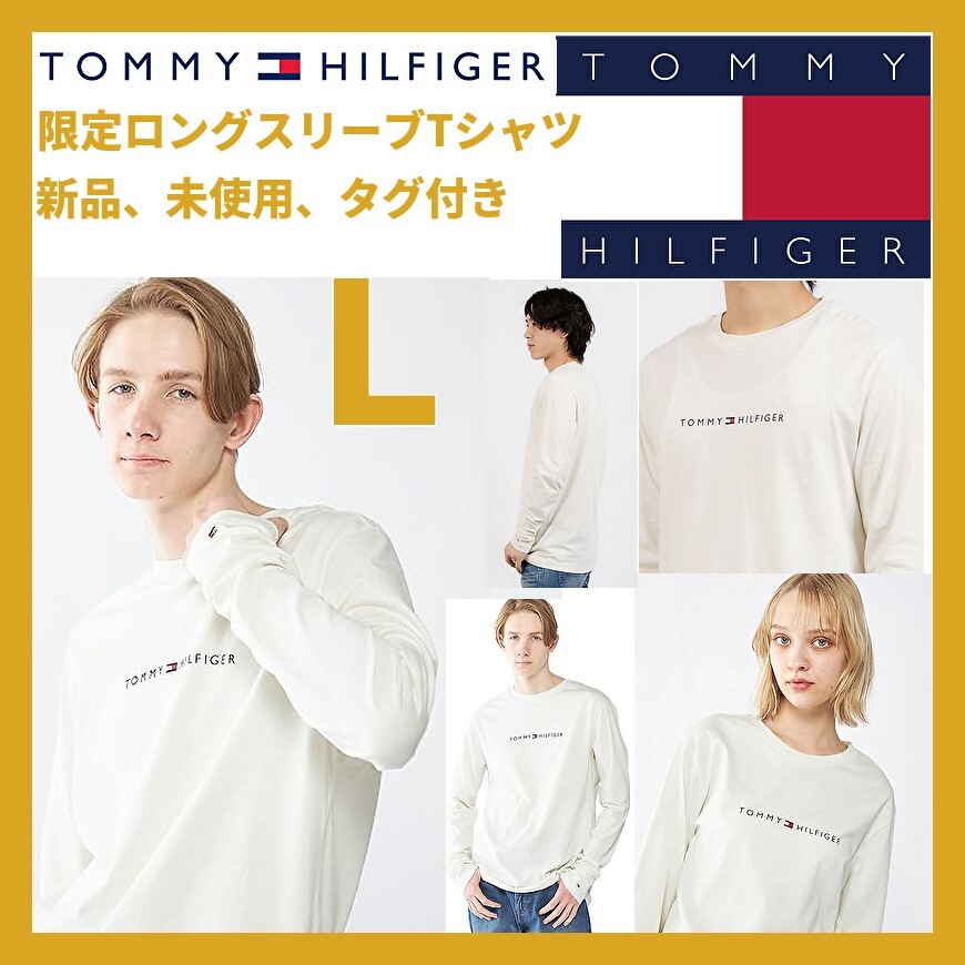 > ■新品 L TOMMY HILFIGER ロゴ ロングスリーブ Tシャツ ロンT 白 長袖 柔らか着ごごち コットン100% トミーヒルフィガー UM03345 NIKE puma