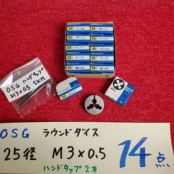 - 【アウトレット品】 OSG ラウンド ダイス 丸ダイス 外径25㎜ m3×0.5 ハンドタップ 2本付 計14点セット ねじ山修正 sp-030-346