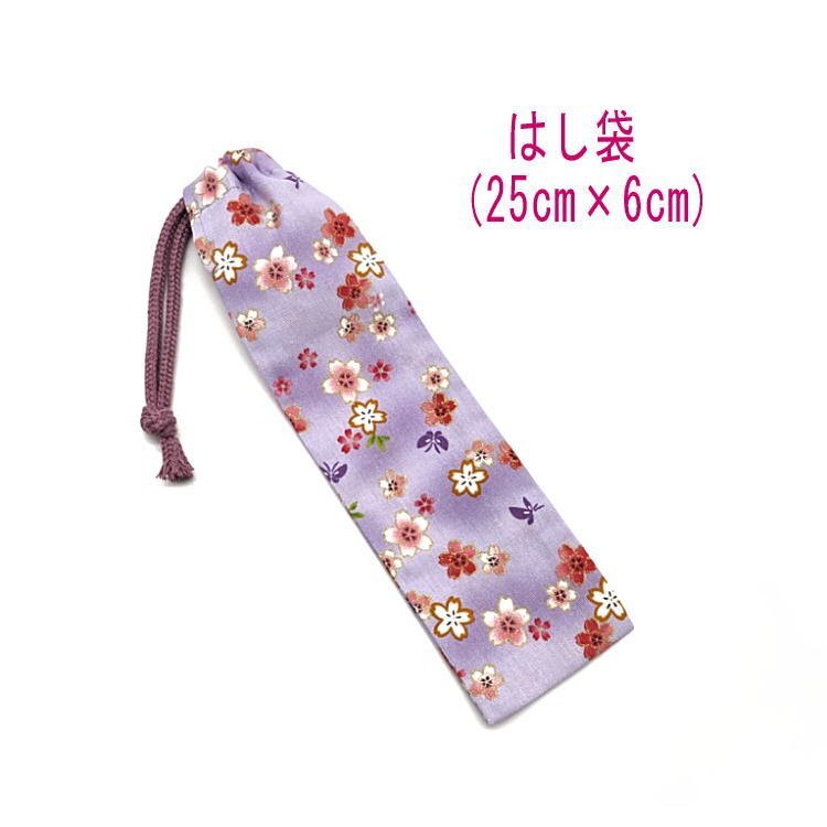 > はし袋・大(25cm×6cm)【和柄 桜&蝶柄 パープル】箸袋 箸入れ はし入れ マイ箸 箸ケース 細長巾着 ペン袋 給食 日本製 サクラ さくら 花