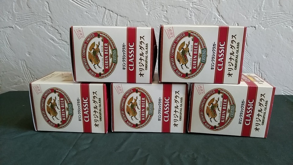 > ☆2☆【インテリア・コレクション】KIRIN キリンクラシックラガー オリジナルグラス 5個 CLASSIC 昭和 レトロ ノベルティ