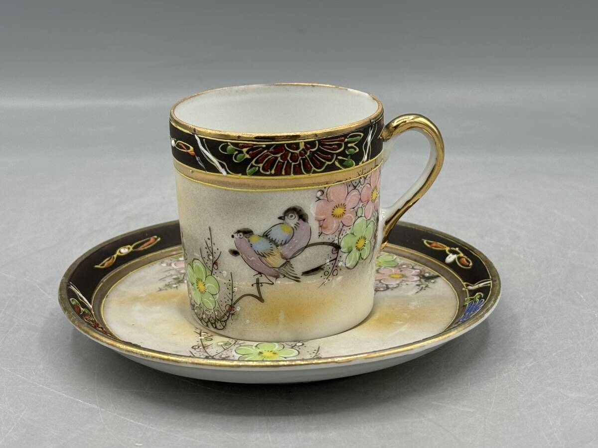 - 里帰り オールドニッポン 盛り上げ 鳥 花 デミタス カップ ソーサー (769) カップアンドソーサー