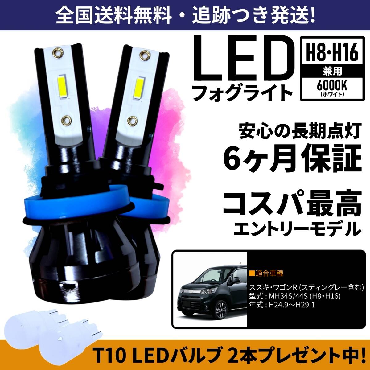 > 【送料無料】スズキ ワゴンR スティングレー対応 MH34S MH44S LED フォグライト フォグランプ H8 H16 ホワイト 6000K 保証付き
