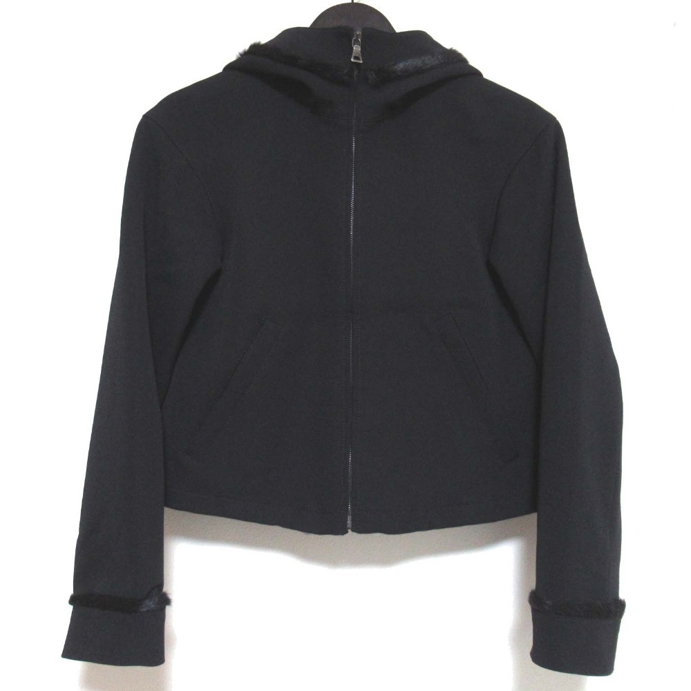 - 美品 PRADA SPORT プラダスポーツ ナイロン ゴートファートリム ジップアップ フーディー ショート丈 ジャケット 38サイズ ブラック