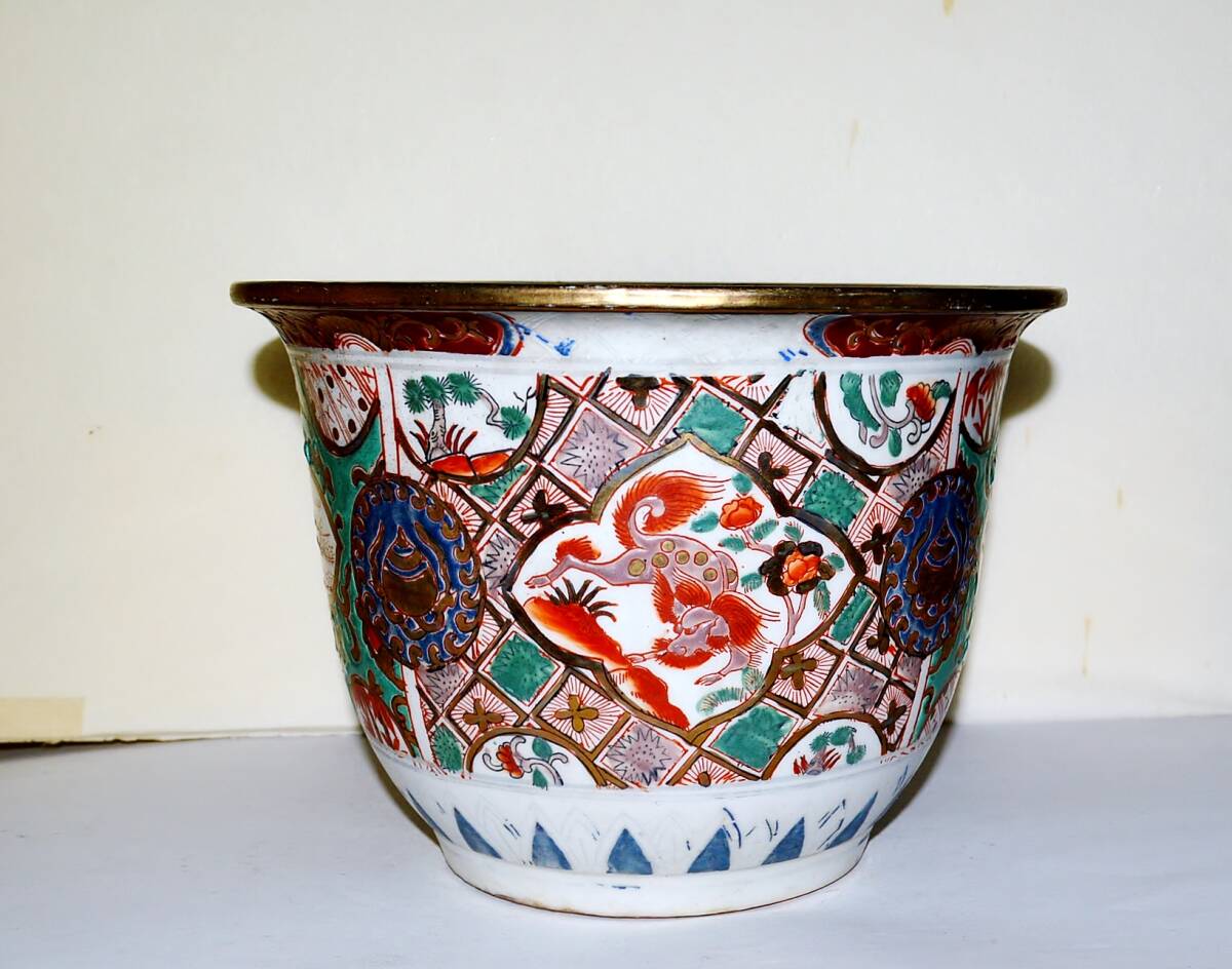 - 絢爛豪華な貴重な逸品 吉祥図金彩絵麒麟鳳凰唐草紋様図 外縁丸懸崖形の鉢