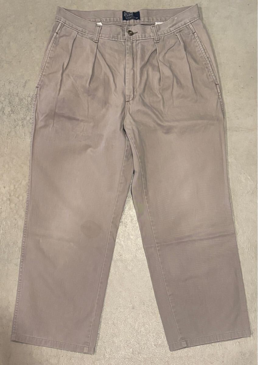 - 【USA製】90s POLO RALPH LAUREN ポロラルフローレン チノパン コットン ツータック パンツ メンズ W32 ベージュ アメリカ製 vintage 古着