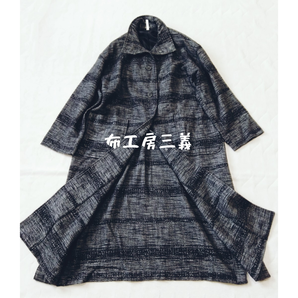 - 布工房三義*コットン手織り*ロングコート*スタンドカラー*モノトーン*日本製*黒系*クリーニング済