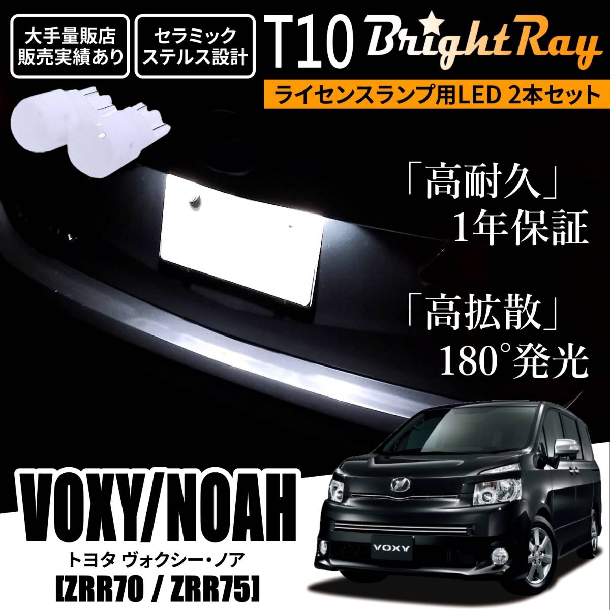 - 送料無料 トヨタ ヴォクシー ノア ZRR70 ZRR75 70系 BrightRay T10 LED バルブ 1年保証 ナンバー灯 ライセンスランプ ウェッジ球 ホワイト