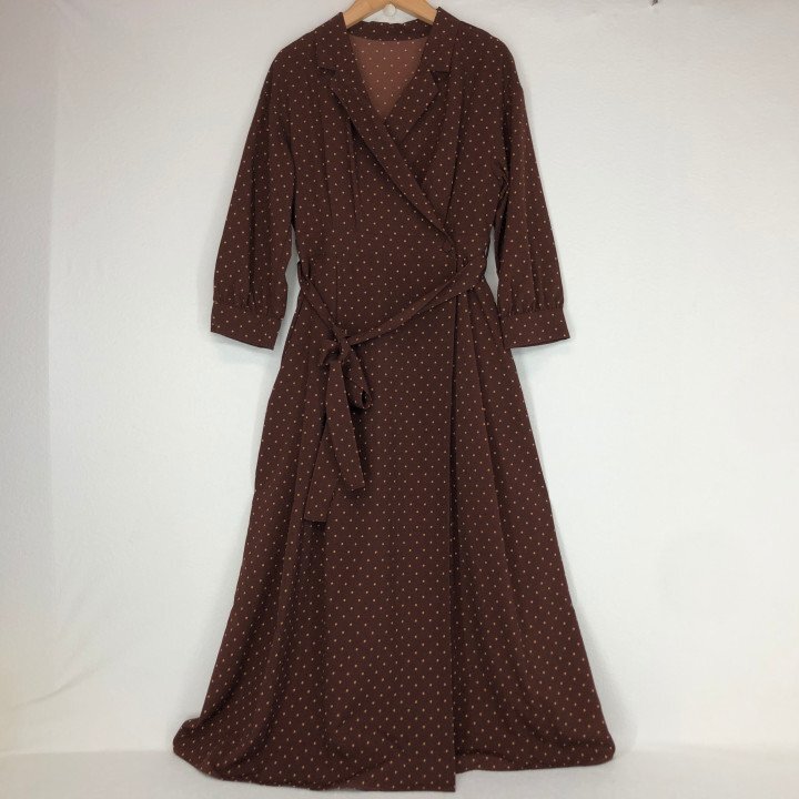 - nano universe ナノユニバース 七分袖 ドット柄 オープンカラー ロングワンピース SIZE: 36 ブラウン LH632025040810