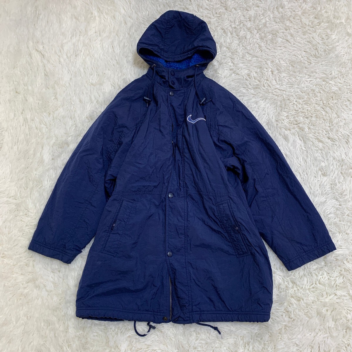- NIKE ナイキ ロングコート 裏ボアコート ロゴ刺繍 カジュアル ブルー 90s