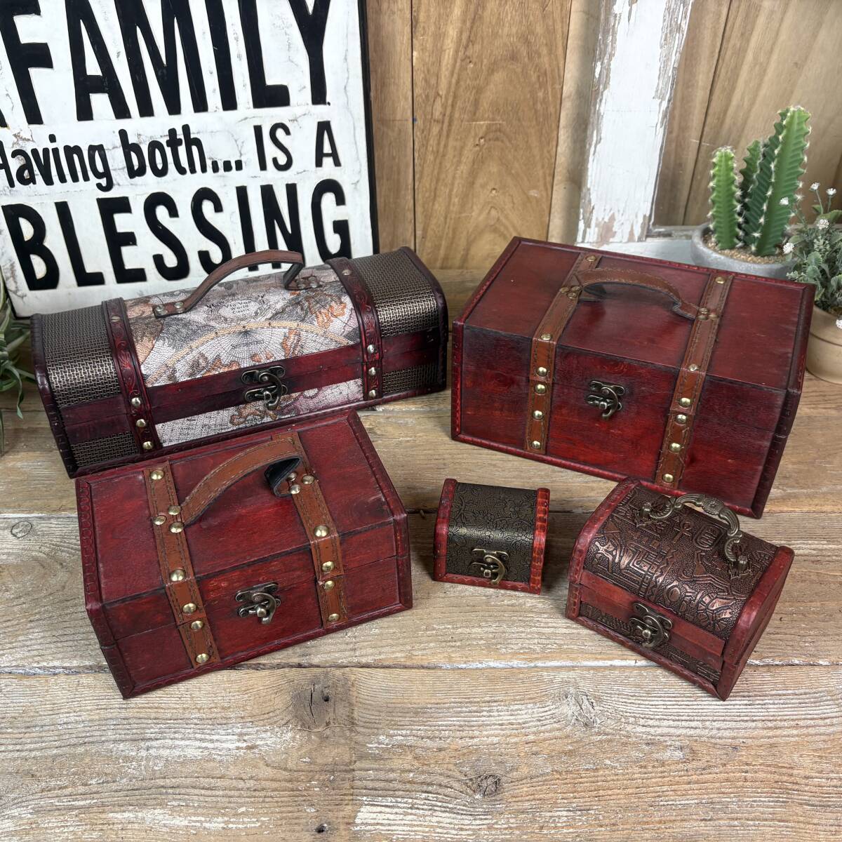 - 送料無料、ビンテージアンティーク調木製カバン型小箱宝箱5点セットBインテリア雑貨収納