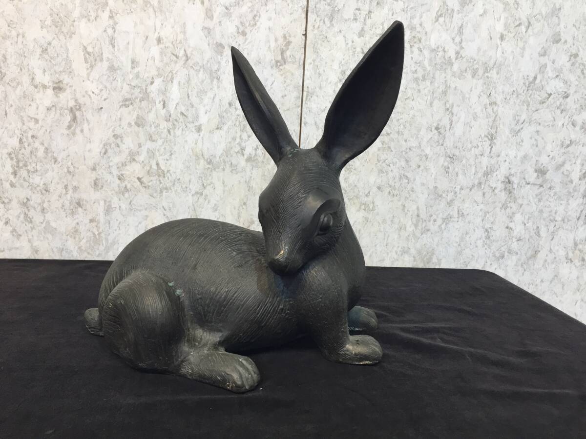 - 『 うさぎ銅器 』鉄製 兎 美術品 縁起物 在銘無し 置物 雑貨 ディスプレイ アンティーク レトロ ★古時家★