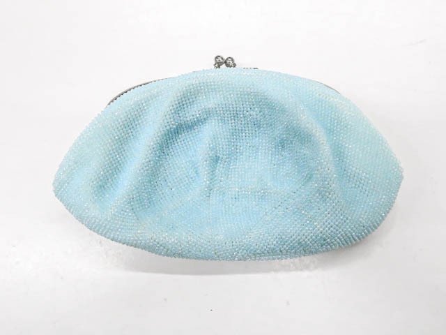 - 《古美術京松》【着物】 アンティーク 和装小物 ビーズバッグ がま口バッグ r7w02-280