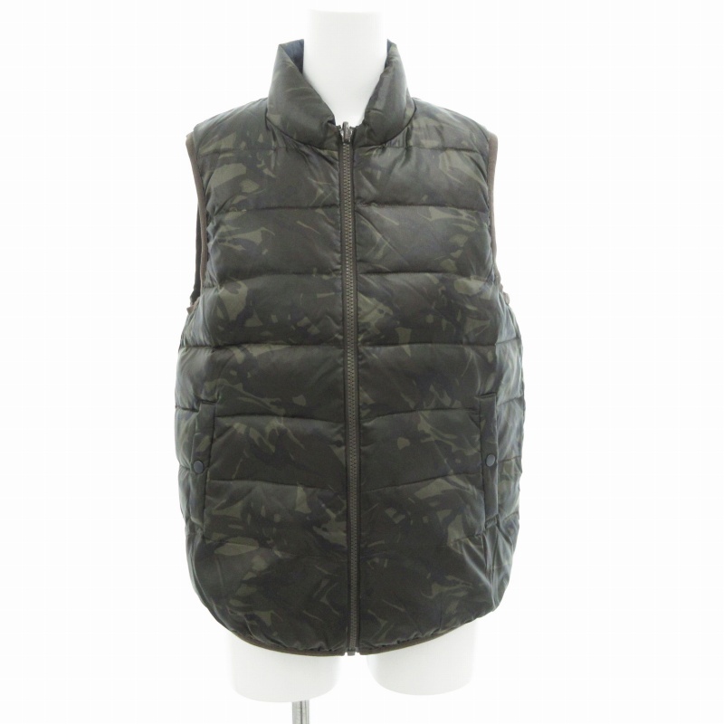 > シップス SHIPS リバーシブル ダウンベスト ジャケット ジップアップ 迷彩柄 ナイロン 38 カーキ 紺 ネイビー /GV レディース