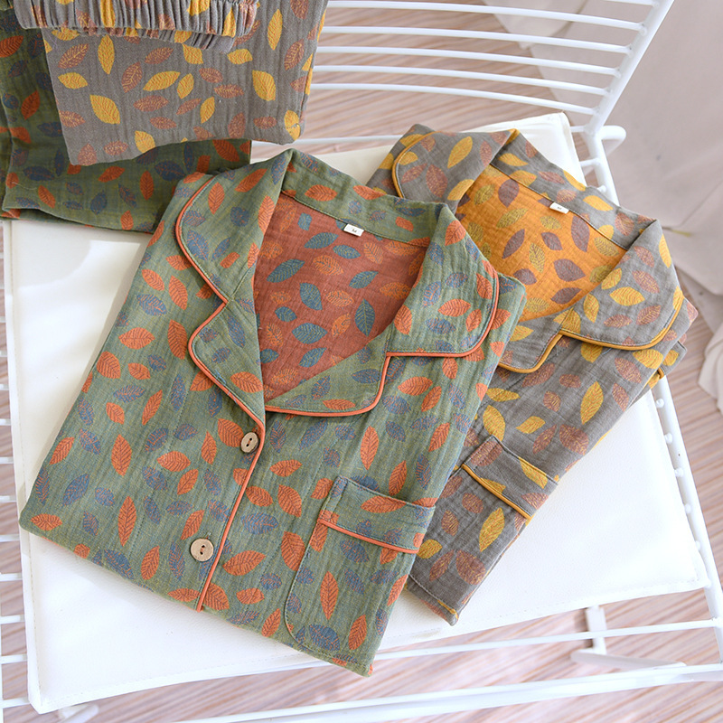 - 新作 新入荷 ガーゼパジャマ 二重 レディース ルームウェア 綿100%ガーゼ 長ズボン 上下セット 敏感肌用 部屋着 春夏秋冬
