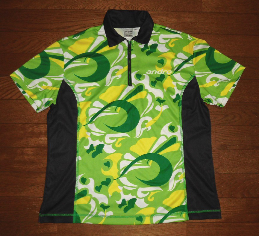 - andro アンドロ 半袖 ドライ ハーフジップ グラフィック ゲームシャツ JTTA公認 GRN-BLK レディース 女性用 XXL 使用僅美品/テーブルテニス