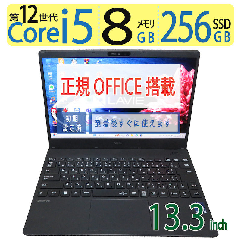 > 【超高速12世代12CPU・超軽】◆NEC PC-VKT44NZGG / 13.3型 ◆ Core i5-1235U[12スレ] /高速 256GB SSD / メモリ8GB ◆ win11 / 正規 Office