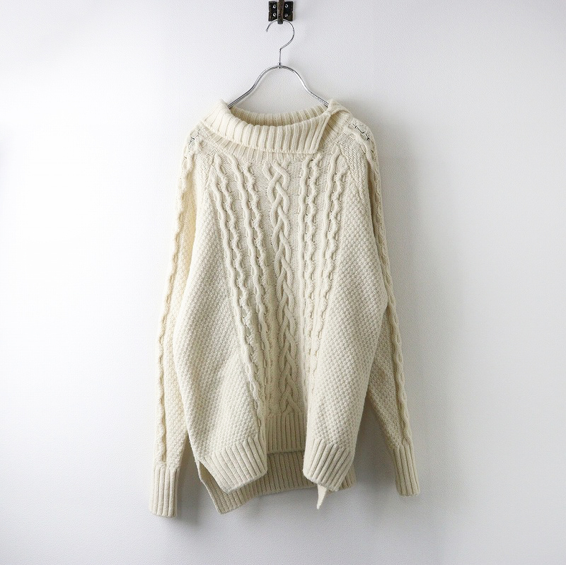 > ハグオーワー HUG O WaR ケーブル編みプルオーバーニット/ライトベージュ セーター トップス 長袖 ハイネック【2400014363289】