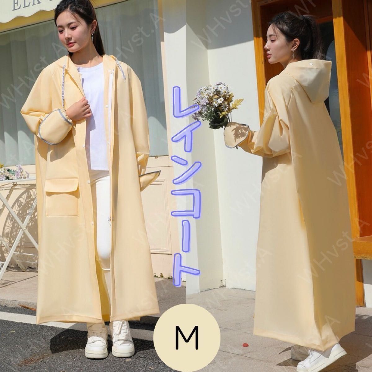 - リュック ロング丈 防水レインコート ハンドカバー付き イエロー 自転車 M レインコート レインウェア かっぱ レディース