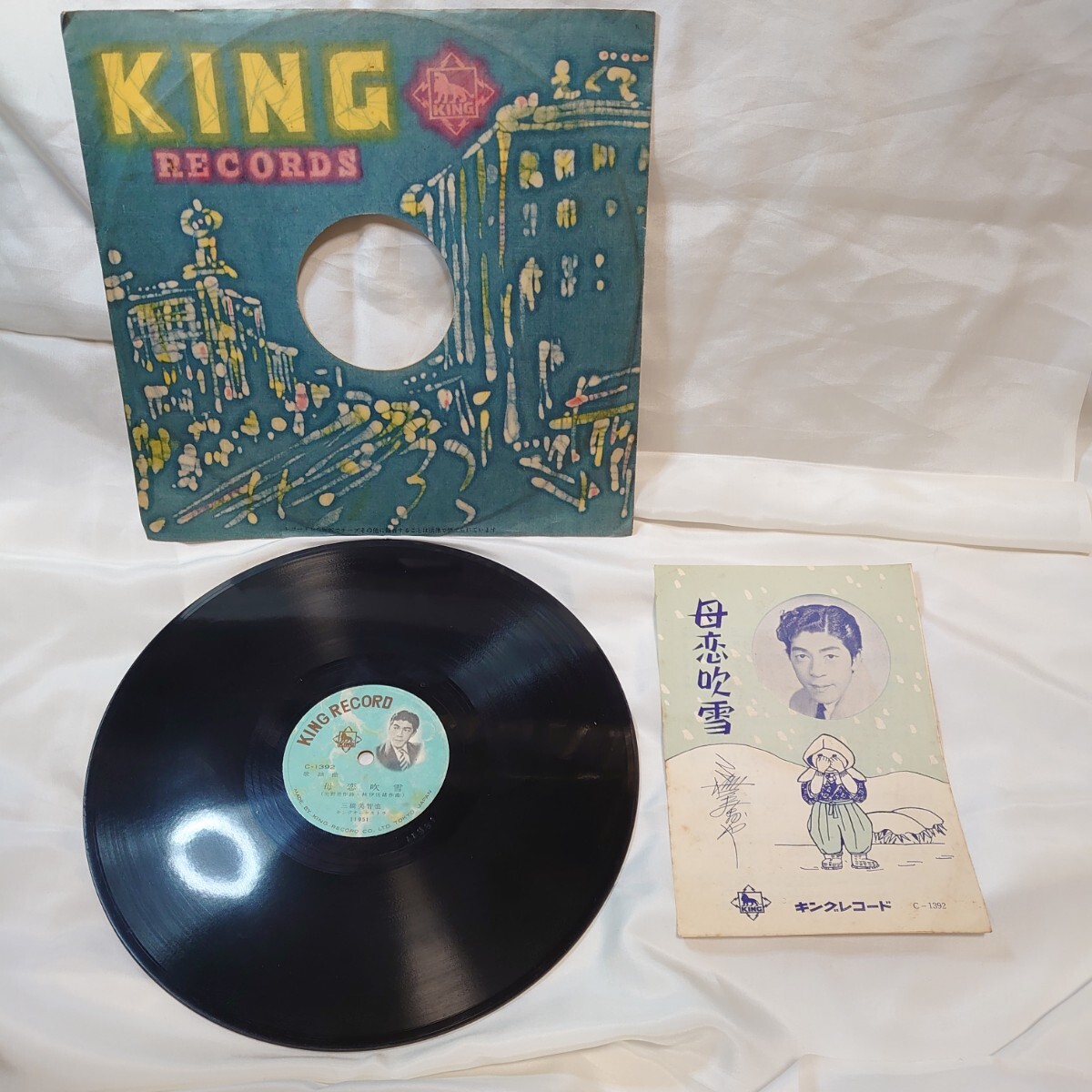 - 419【古い/SP盤レコード】母恋吹雪 江差恋しや 三橋美智也 C-1392 歌詞カード 袋付き 和モノ 蓄音機 昭和歌謡 流行歌 懐メロ