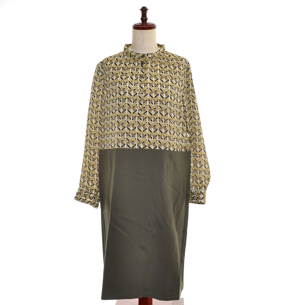 > ■536529 pierre cardin signe ピエールカルダン ●ワンピース オーバーラップヘリンボーンワンピース サイズ40 21aw レディース カーキ
