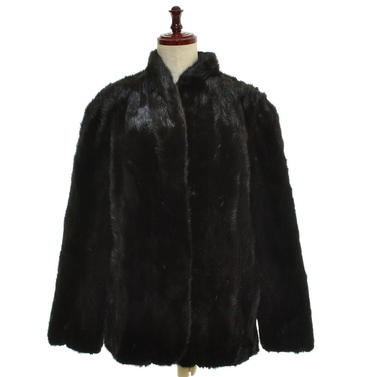 - □543186 hitebear ○毛皮ジャケット ミンクファーショートコート サイズL 逆毛 レディース ダークブラウン