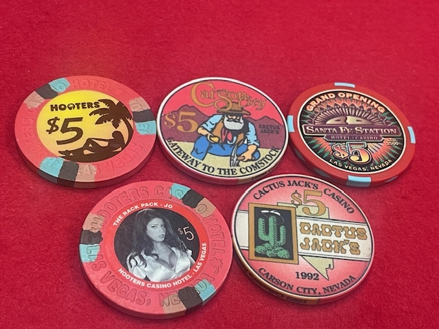 - C-11現状品 チップ 入手困難 本場海外 ラスベガスなど ヴィンテージ カジノチップ $5 ポーカーチップ ゴルフマーカー5枚セット